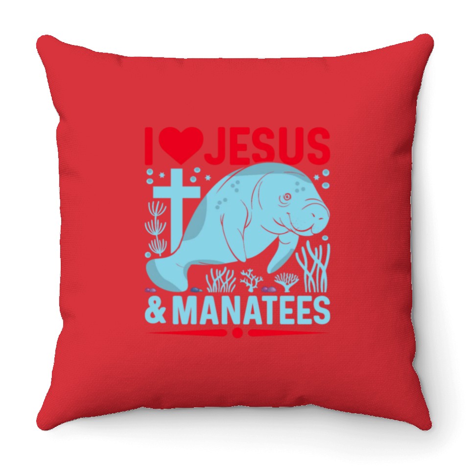 Buy eye-catching I Love Jesus and Manatees - Sea Cows Lover Throw Pillows or see more Throw Pillows products at Printblur shop now to explore many surprises from our shop!