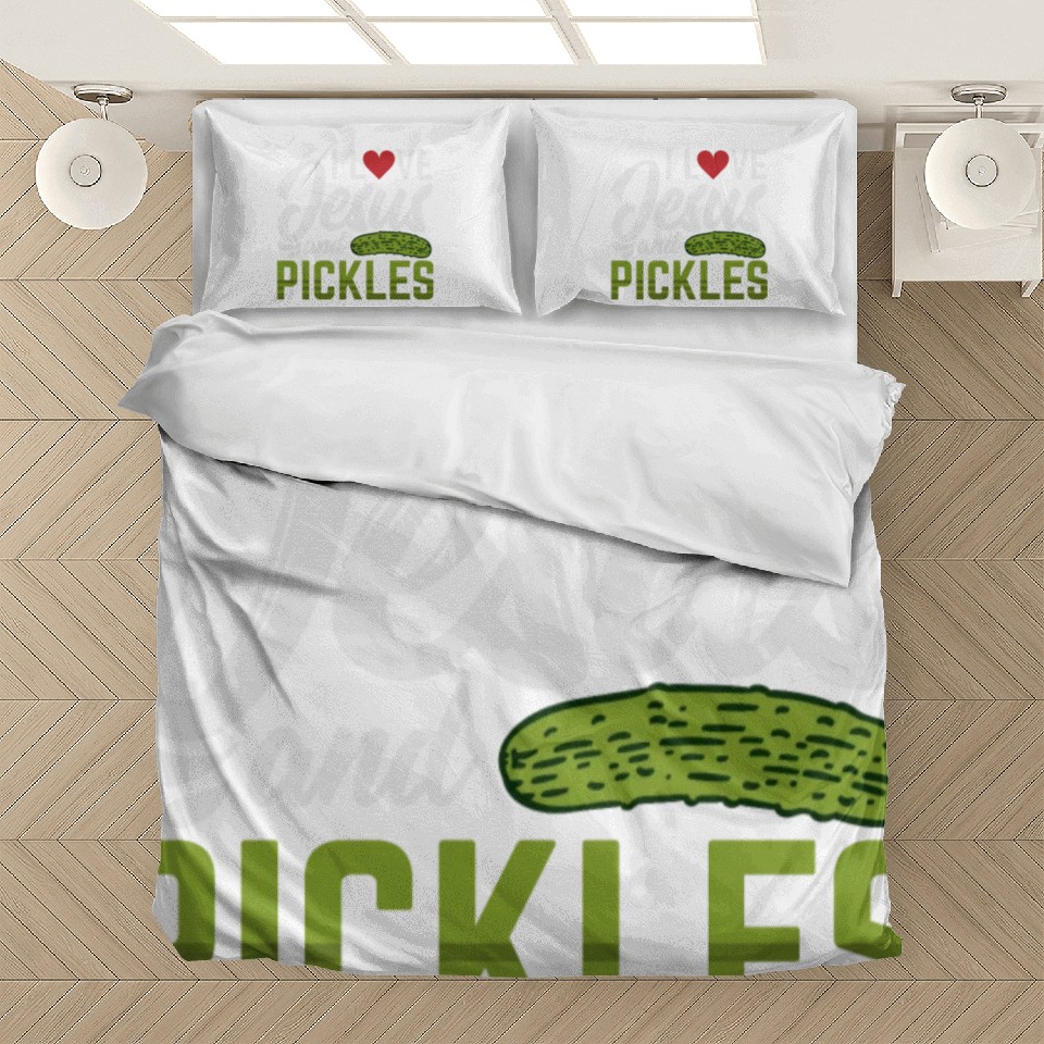 Buy stunning I Love Jesus And Pickles Bedding Sets or see more Bedding Sets products at Printblur right now to receive many amazing discounts!