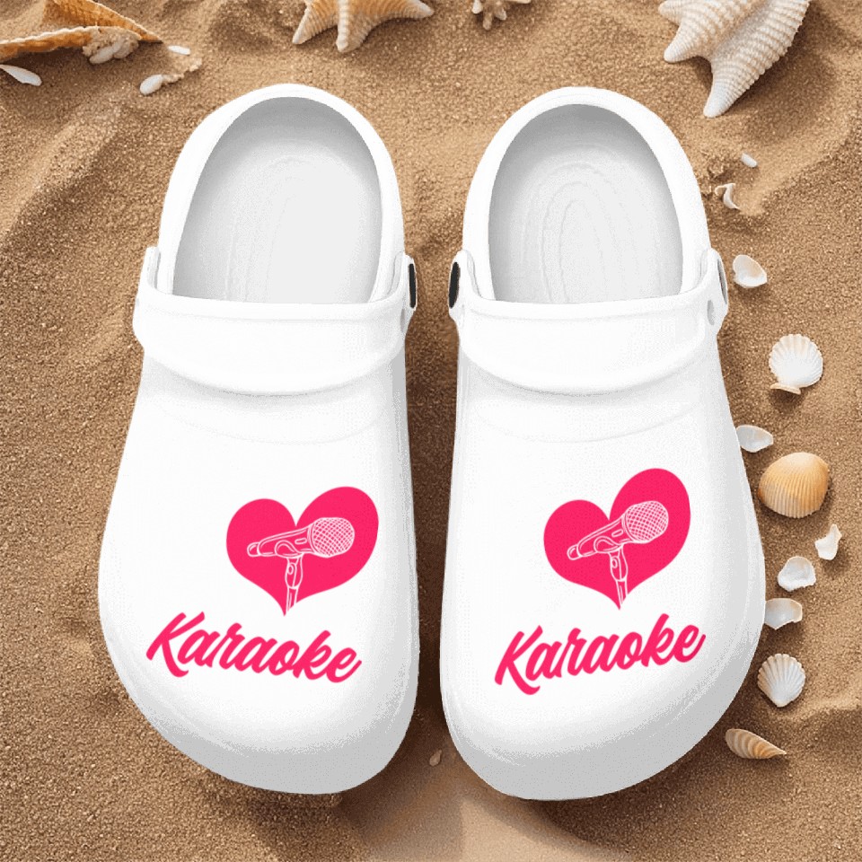 You are seeing a unique and impressive product I Love Karaoke Microphone Heart Nurse Clogs For Men WHITE belong theme Nurse Clogs at Printblur