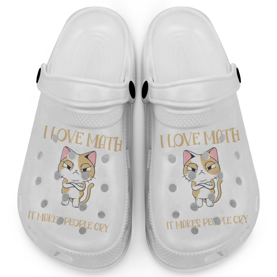 You are viewing one of the trendiest products I Love Math It Makes People Cry Cat Funny Math Clogs For Kids WHITE belong theme Clogs at Printblur