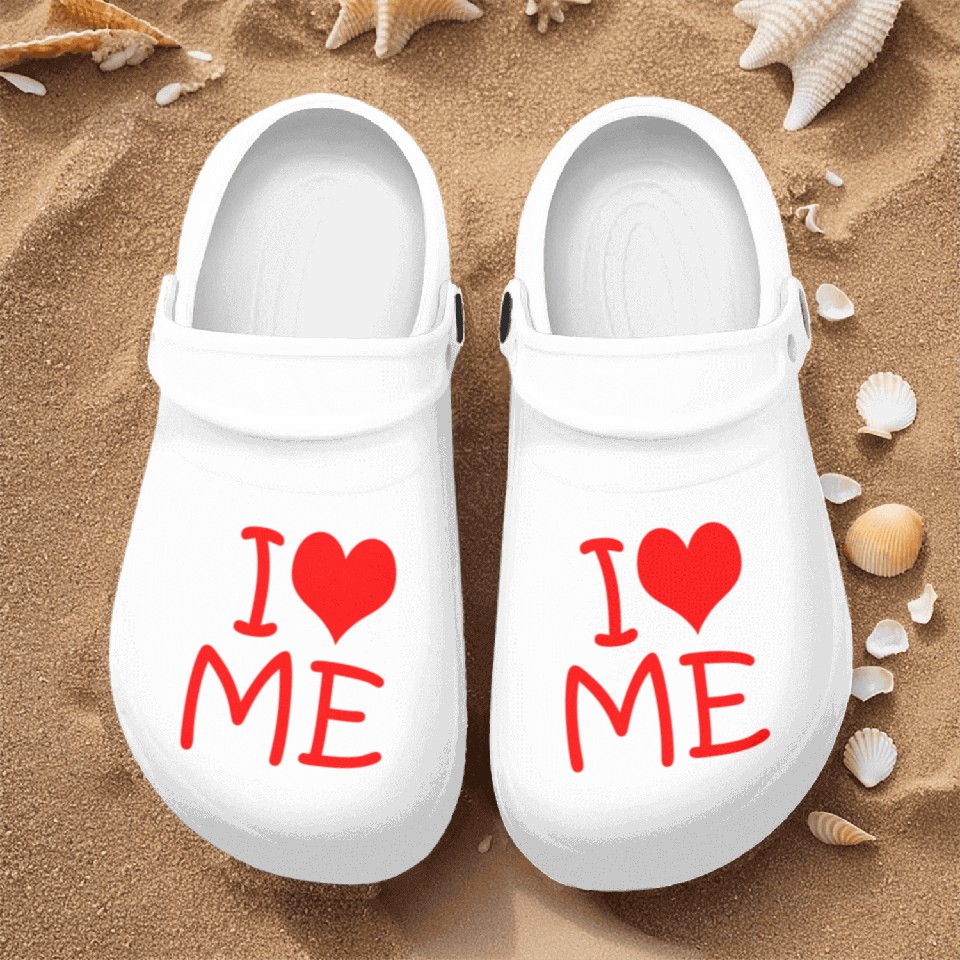 You're taking a peek at the product I Love Me Valentine's Nurse Clogs For Men WHITE belong theme Nurse Clogs at Printblur