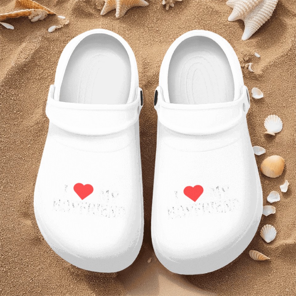 The product unique design you searched for is I Love my Boyfriend! Nurse Clogs For Men WHITE belong theme Nurse Clogs at Printblur