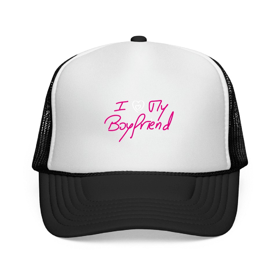You are seeing a unique and impressive product I Love My Boyfriend - Pink Design on Black Trucker Caps For Unisex Black belong theme Trucker Caps at Printblur