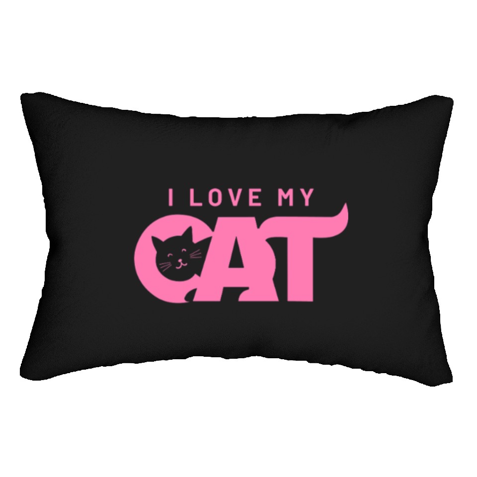 Shop for attractive I Love My Cat – Cute Pink Cat Face Graphic Lumbar Pillows or see more Lumbar Pillows products on https://printblur.com right now!