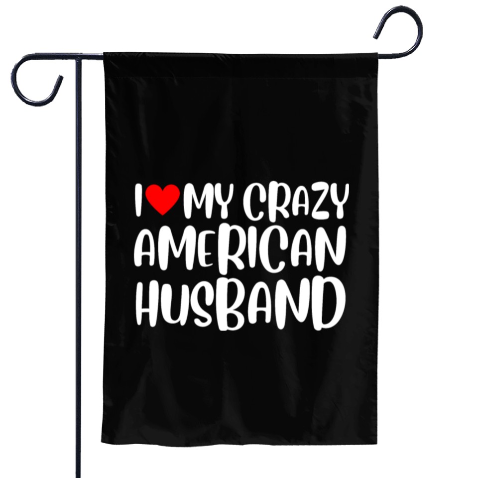 You are seeing a unique and impressive product I Love My Crazy American Husband, Married Couple Garden Flags For Black belong theme Garden Flags at Printblur