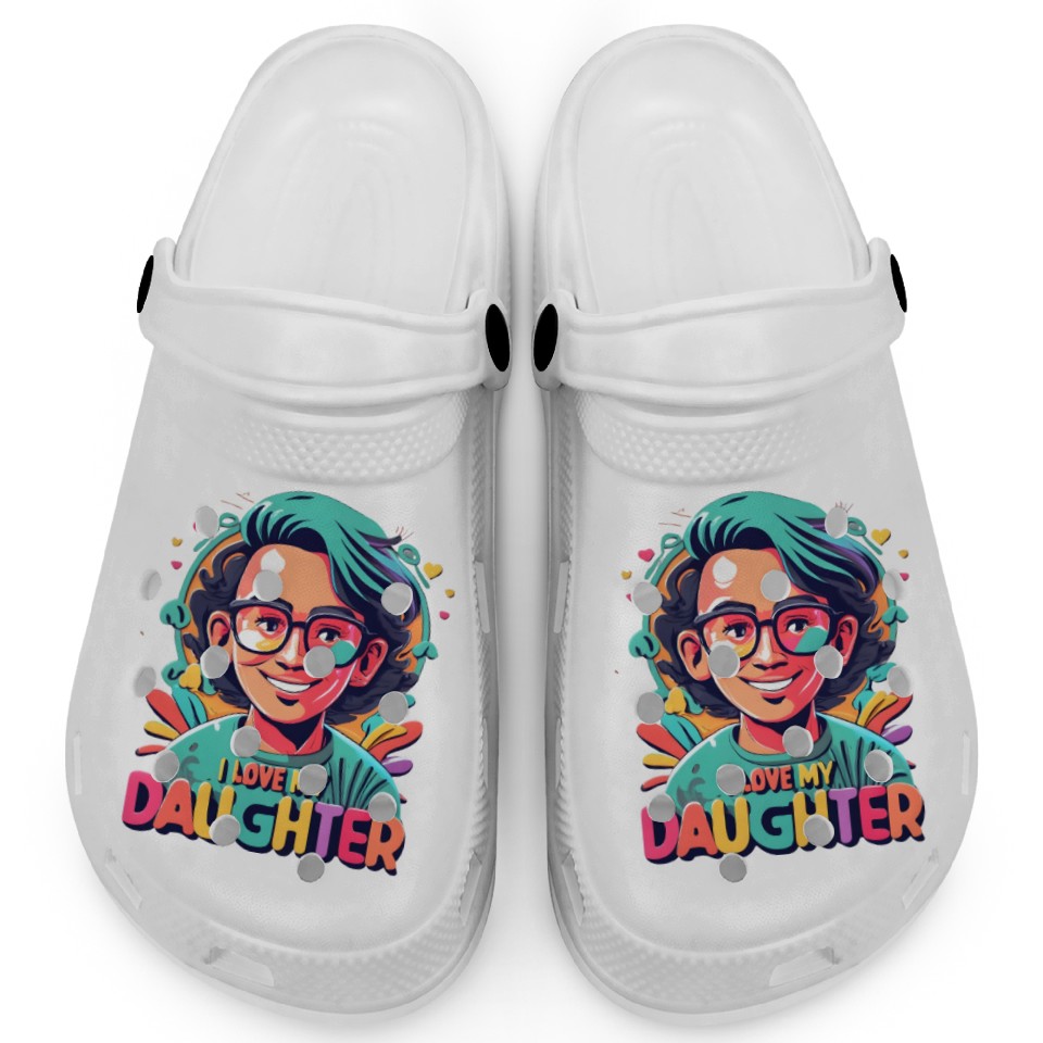 You are viewing one of the trendiest products I Love My Daughter Clogs For Kids WHITE belong theme Clogs at Printblur