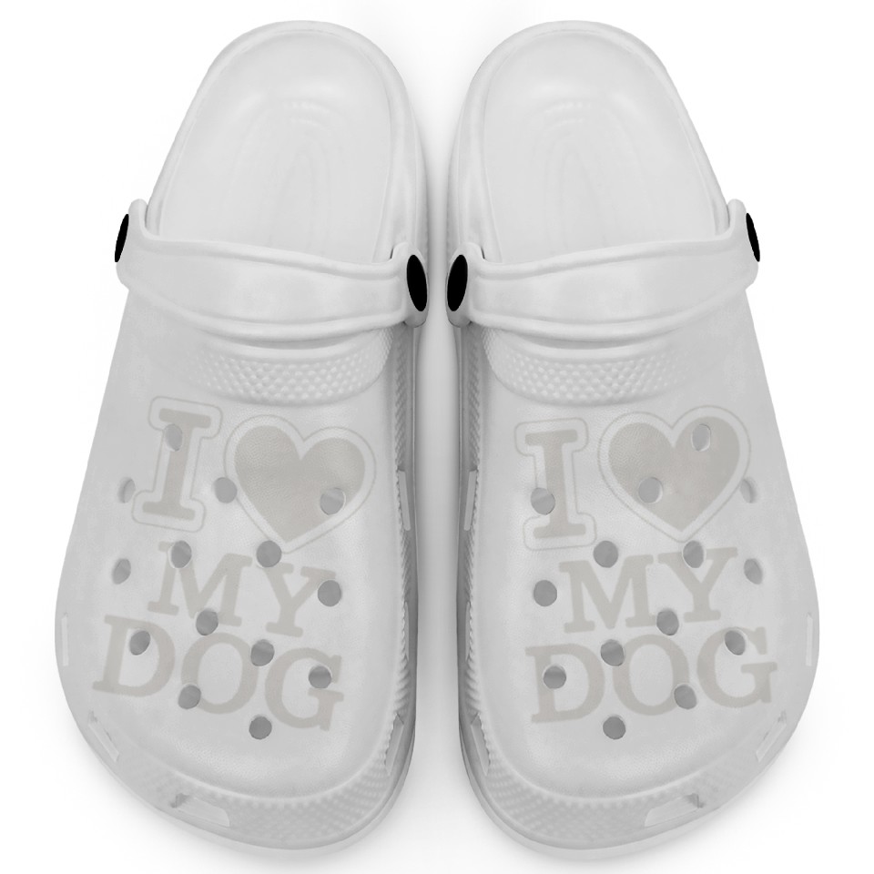 You're taking a peek at the product I Love My Dog – Bold Heart Design Clogs For Kids WHITE belong theme Clogs at Printblur