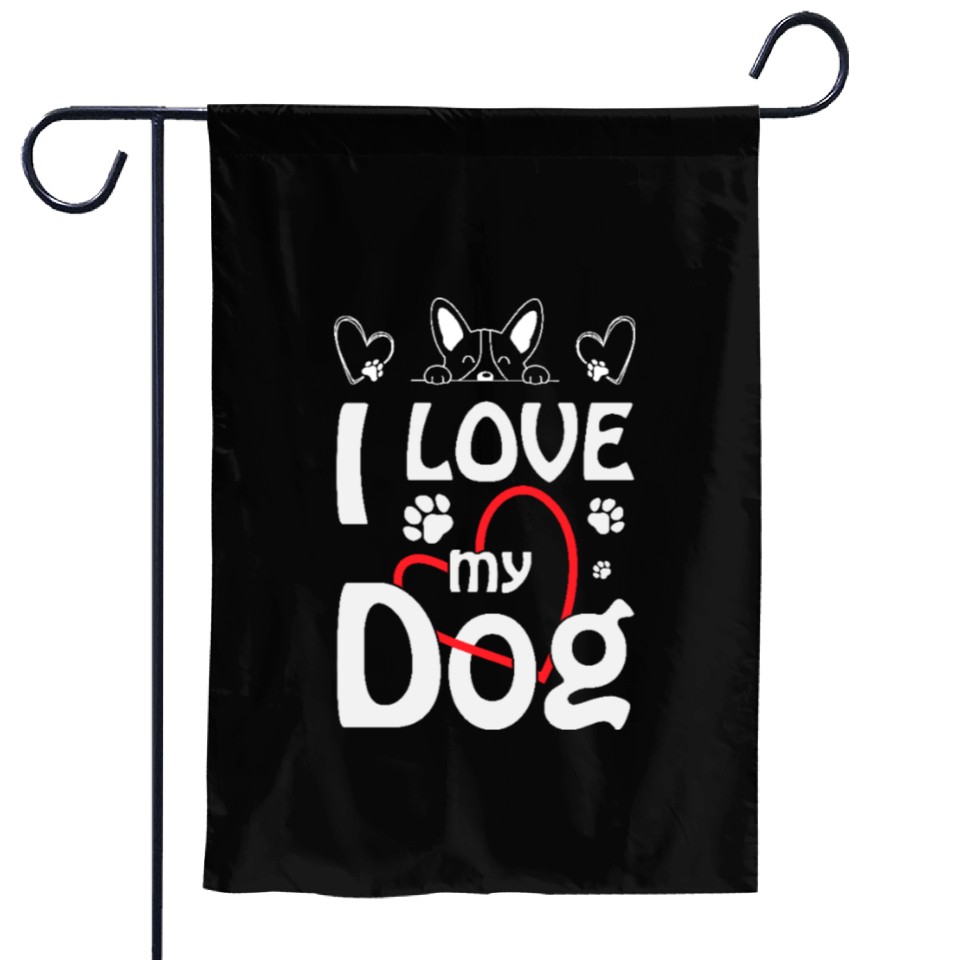 Buy eye-catching I Love My Dog: Cute Dog Lover Design Garden Flags or see more Garden Flags products at Printblur shop now to explore many surprises from our shop!