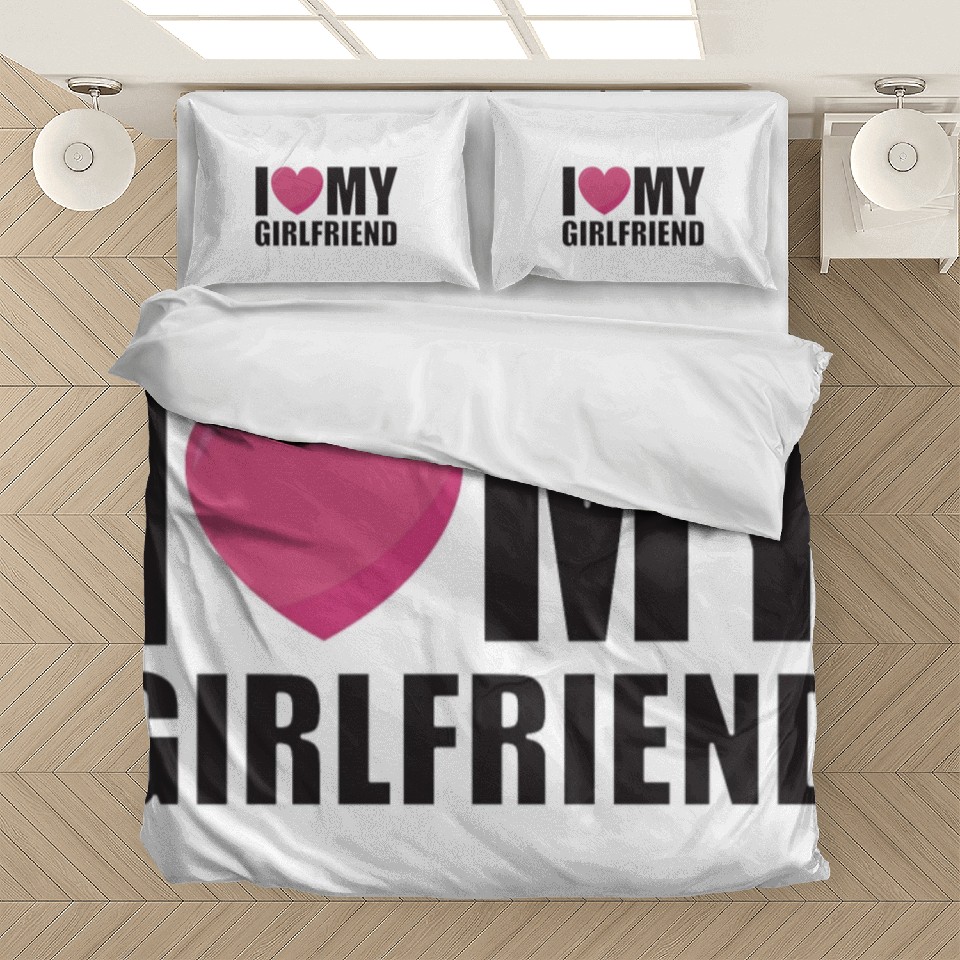 Shop for impressive I LOVE MY GIRLFRIEND relationship Valentine's Day Bedding Sets or see more Bedding Sets products right now on Printblur to enjoy your happiness!