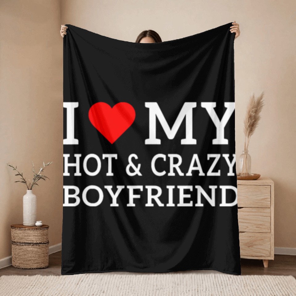 Shop for impressive I Love My Hot and Crazy Boyfriend with Heart Throw Blankets or see more Throw Blankets products right now on Printblur to enjoy your happiness!