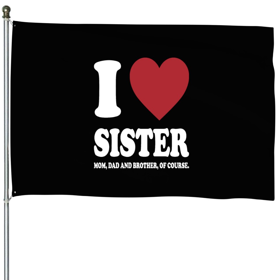 Shop for attractive I LOVE MY SISTER, MOM, DAD AND BROTHER OF COURSE House Flags or see more House Flags products on https://printblur.com right now!