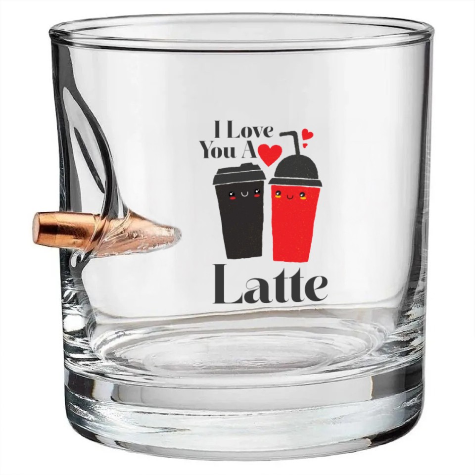 I Love You A Latte Couples Romance Bullet Whiskey Glasses
