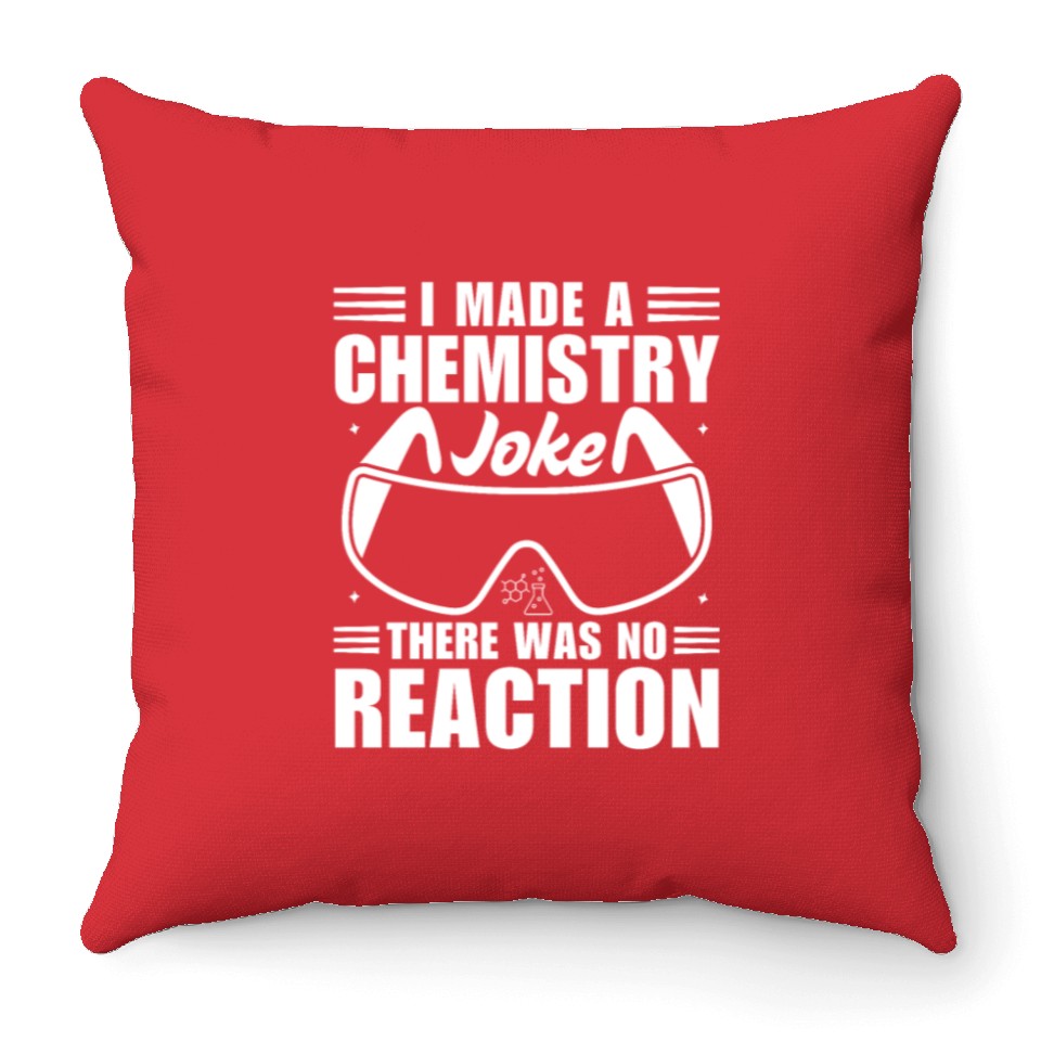 The product unique design you searched for is I Made A Chemistry Joke There Was No Reaction Throw Pillows For Cover Only Red belong theme Throw Pillows at Printblur