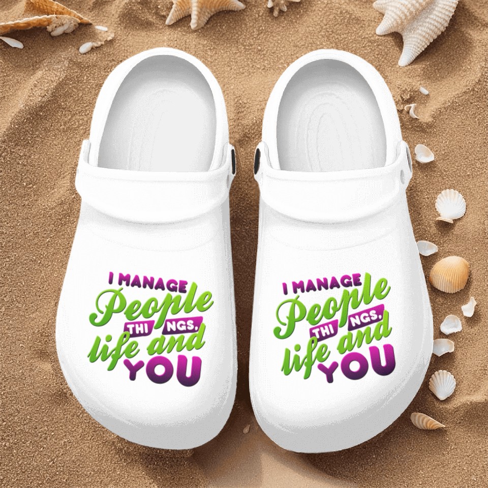 You are shopping for a stunning and trendy product I Manage People Things Life and YOU nostalgia Nurse Clogs For Men WHITE belong theme Nurse Clogs at Printblur