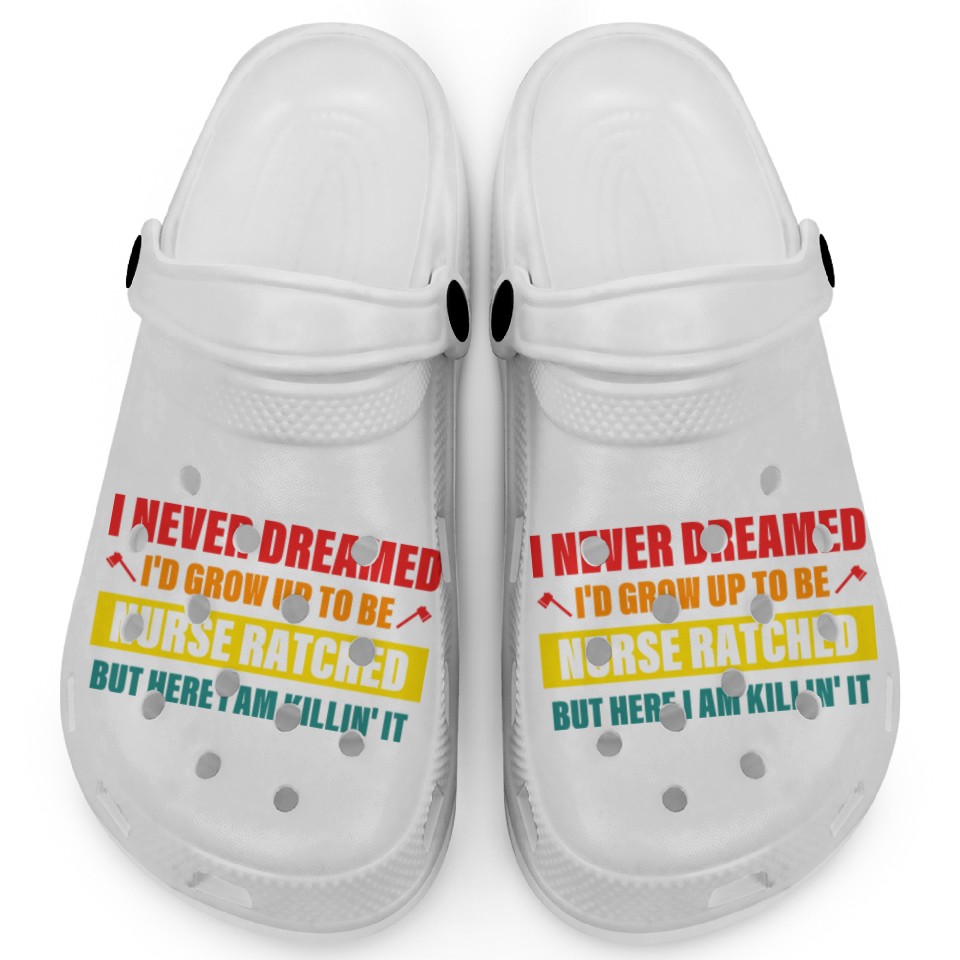 Buy eye-catching I Never Dreamed I'd Grow Up To Be Nurse Ratched Clogs or see more Clogs products at Printblur shop now to explore many surprises from our shop!