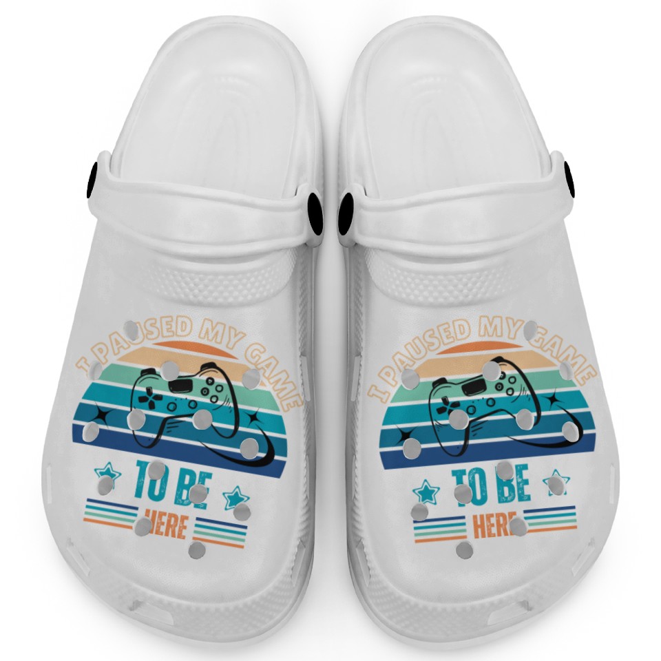 Shop for impressive i paused my game TO BE HERE Clogs or see more Clogs products right now on Printblur to enjoy your happiness!