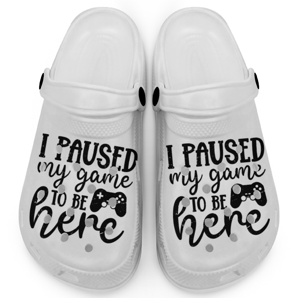 You are seeing a unique and impressive product I Paused My Game To Be Here Clogs For Kids WHITE belong theme Clogs at Printblur