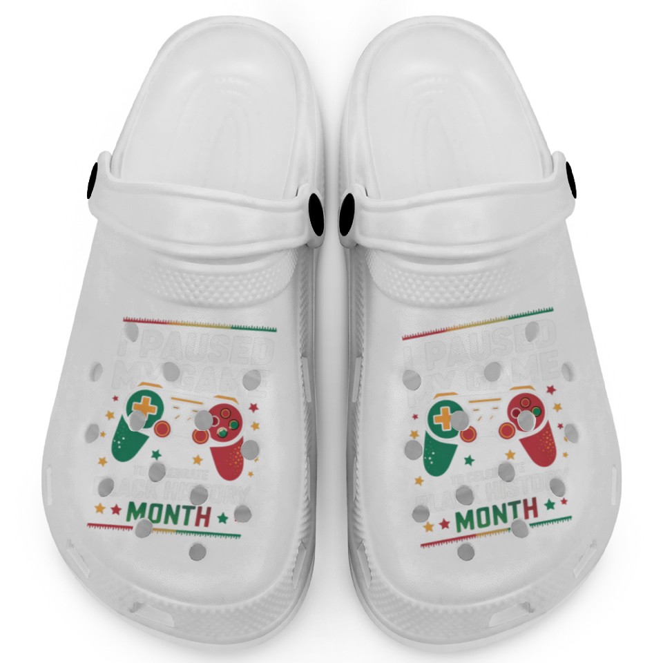 You are viewing an exclusive and elegant product I PAUSED MY GAME TO CELEBRATE BLACK HISTORY MONTH Clogs For Kids WHITE belong theme Clogs at Printblur