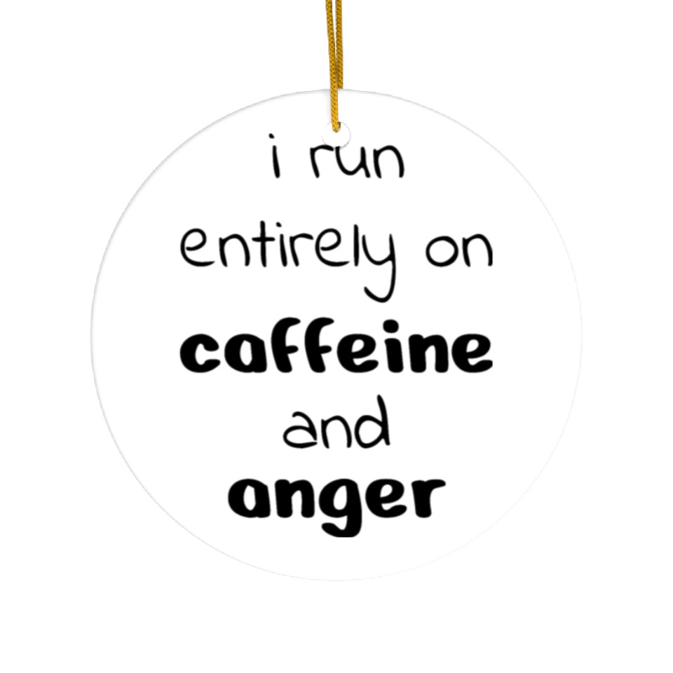 You're taking a peek at the product i run entirely on caffeine and anger Ceramic Ornaments For WHITE belong theme Ceramic Ornaments at Printblur