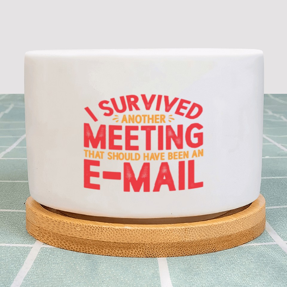 The product unique design you searched for is I Survived Another Meeting 21 Plant Pots For WHITE belong theme Plant Pots at Printblur