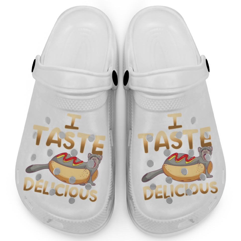 You are viewing one of the trendiest products I Taste Delicious Ferret Mom Dad Funny Ferrets Clogs For Kids WHITE belong theme Clogs at Printblur