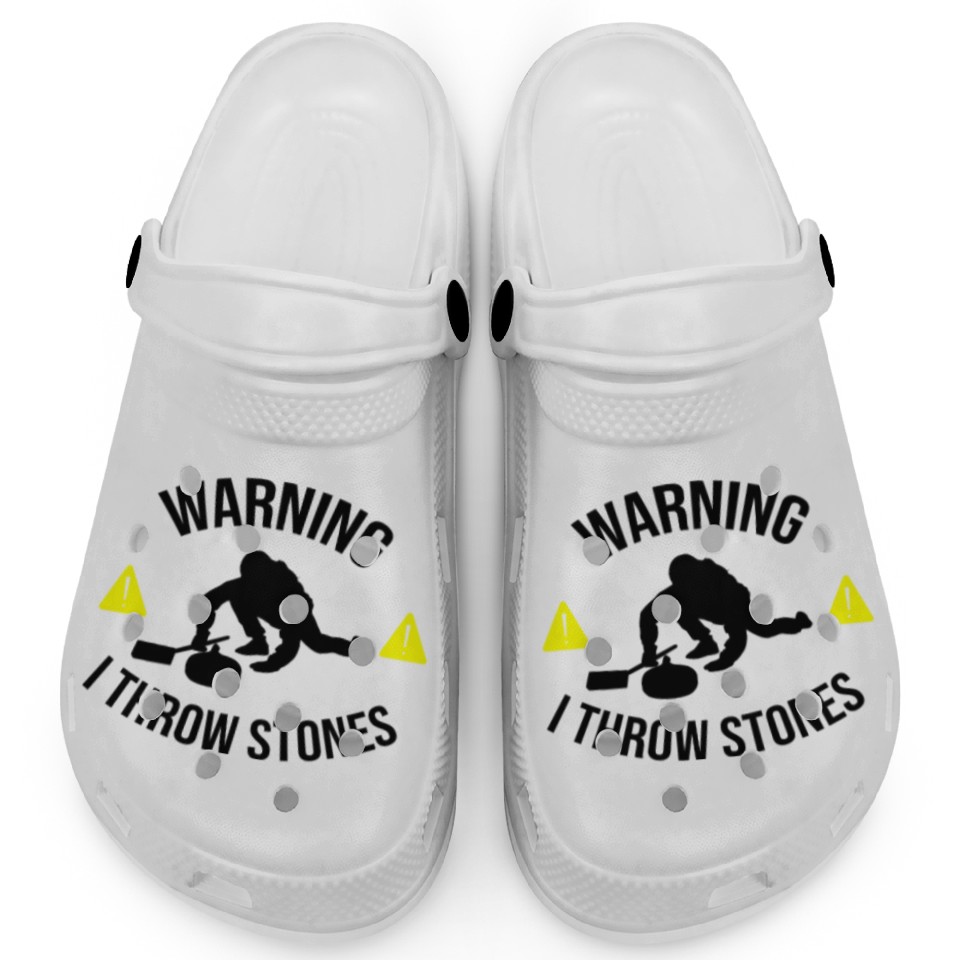 Own fascinating I Throw Stones | Funny Curling Player Gift Clogs or see more Clogs products now from Printblur shop to enjoy your shopping time!