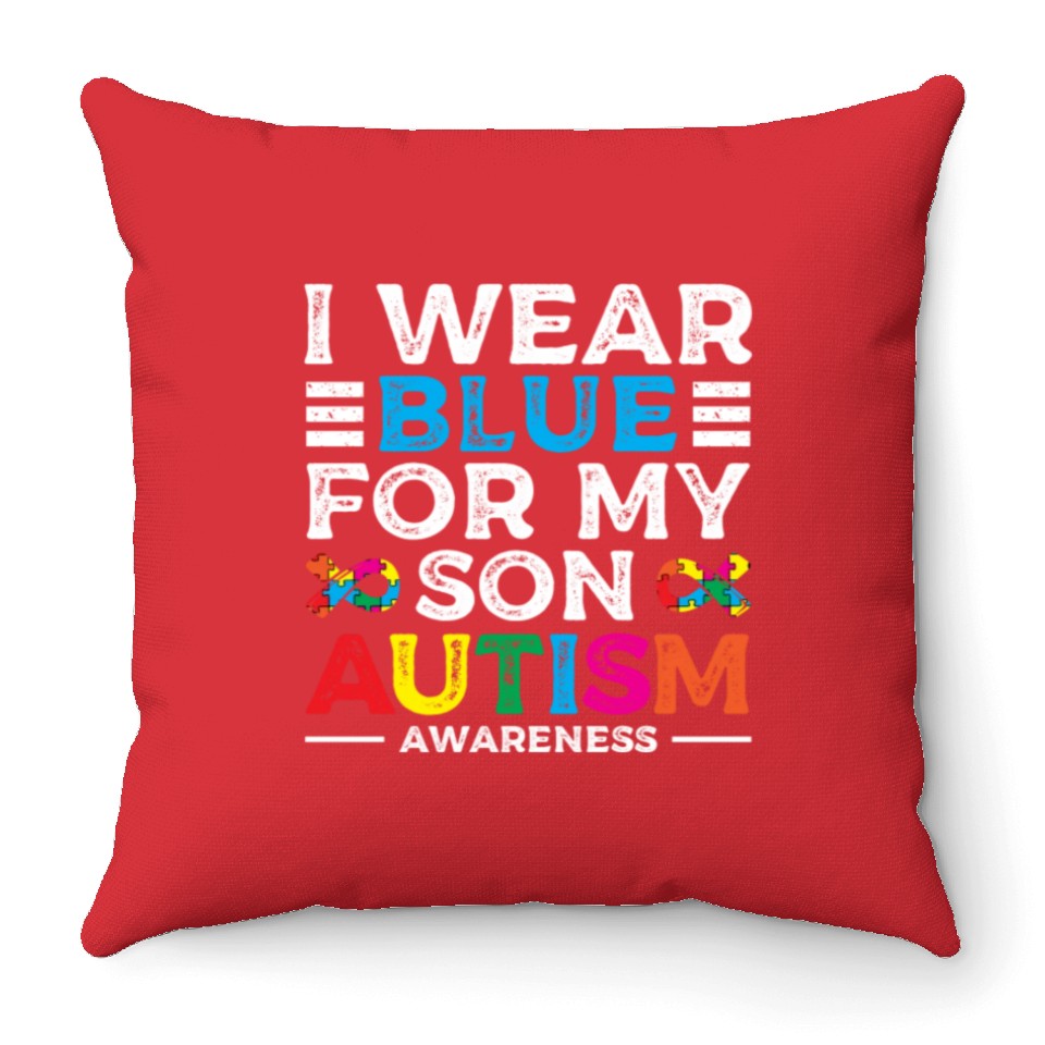 You are viewing an exclusive and elegant product I Wear Blue For My Son Love Support Autism Throw Pillows For Cover Only Red belong theme Throw Pillows at Printblur