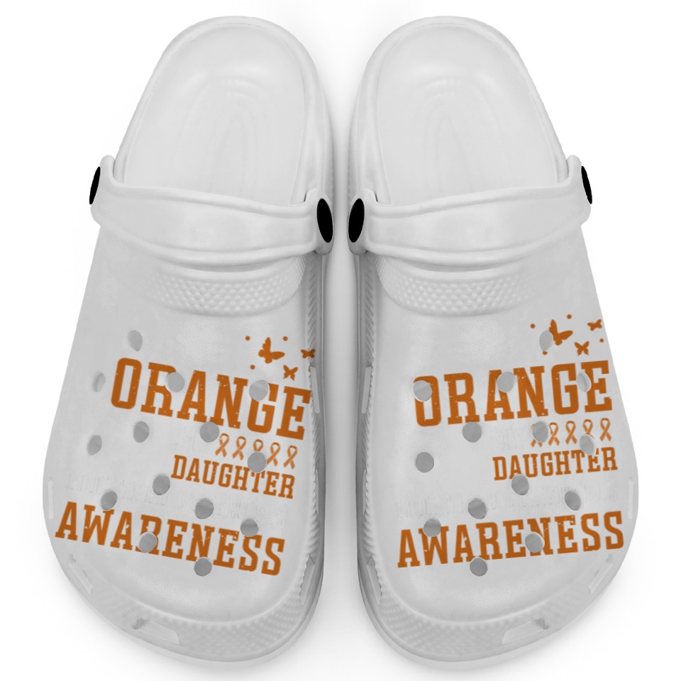 You're looking at the eye-catching product I Wear Orange For My Daughter Multiples Sclerosis Clogs For Kids WHITE belong theme Clogs at Printblur