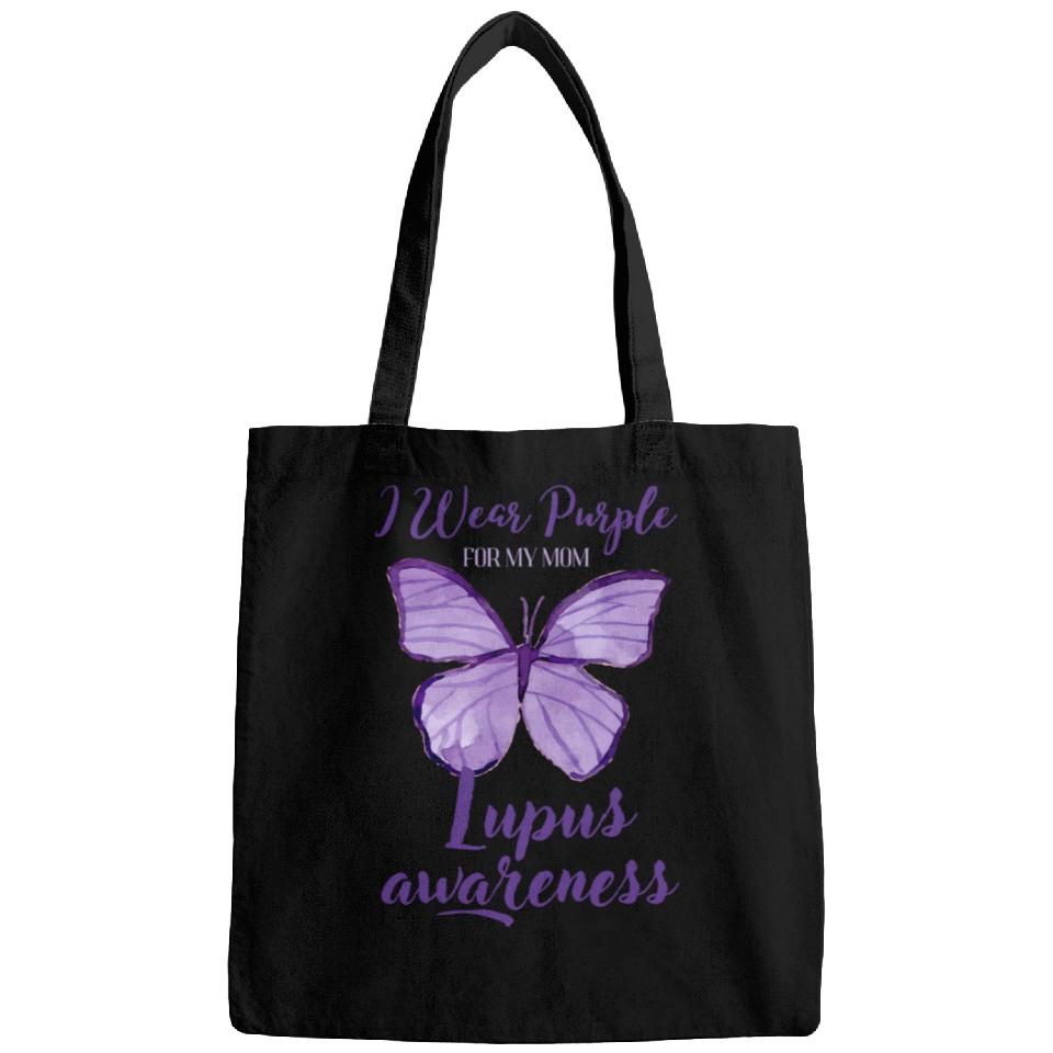 Shop for attractive I Wear Purple For My Mom Lupus Awareness Butterfly Bags or see more Bags products on https://printblur.com right now!