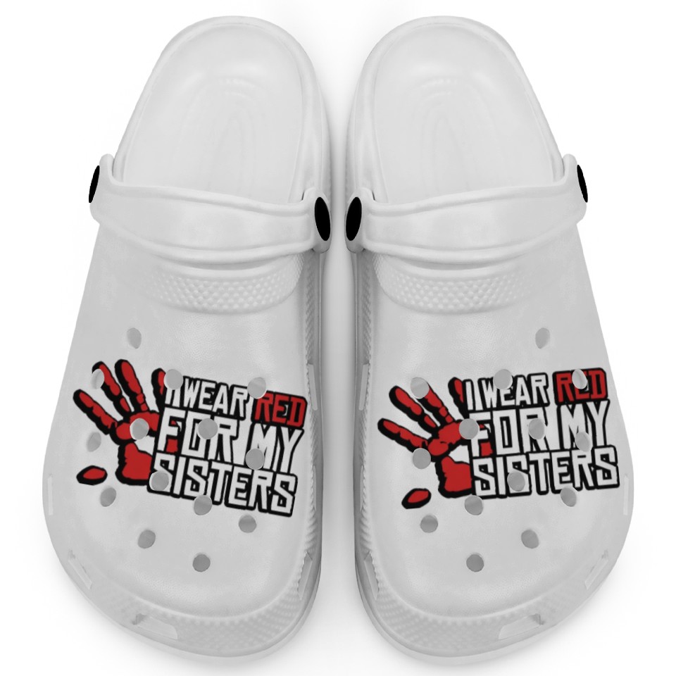 You are shopping for a stunning and trendy product I Wear Red For My Sisters Native American MMIW Clogs For Kids WHITE belong theme Clogs at Printblur