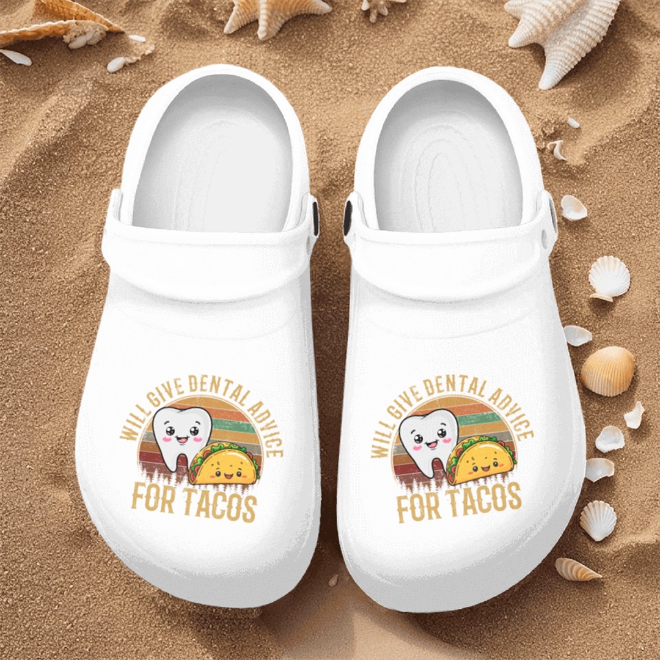 The product unique design you searched for is i will give dental advice for tacos, Dentist Nurse Clogs For Men WHITE belong theme Nurse Clogs at Printblur