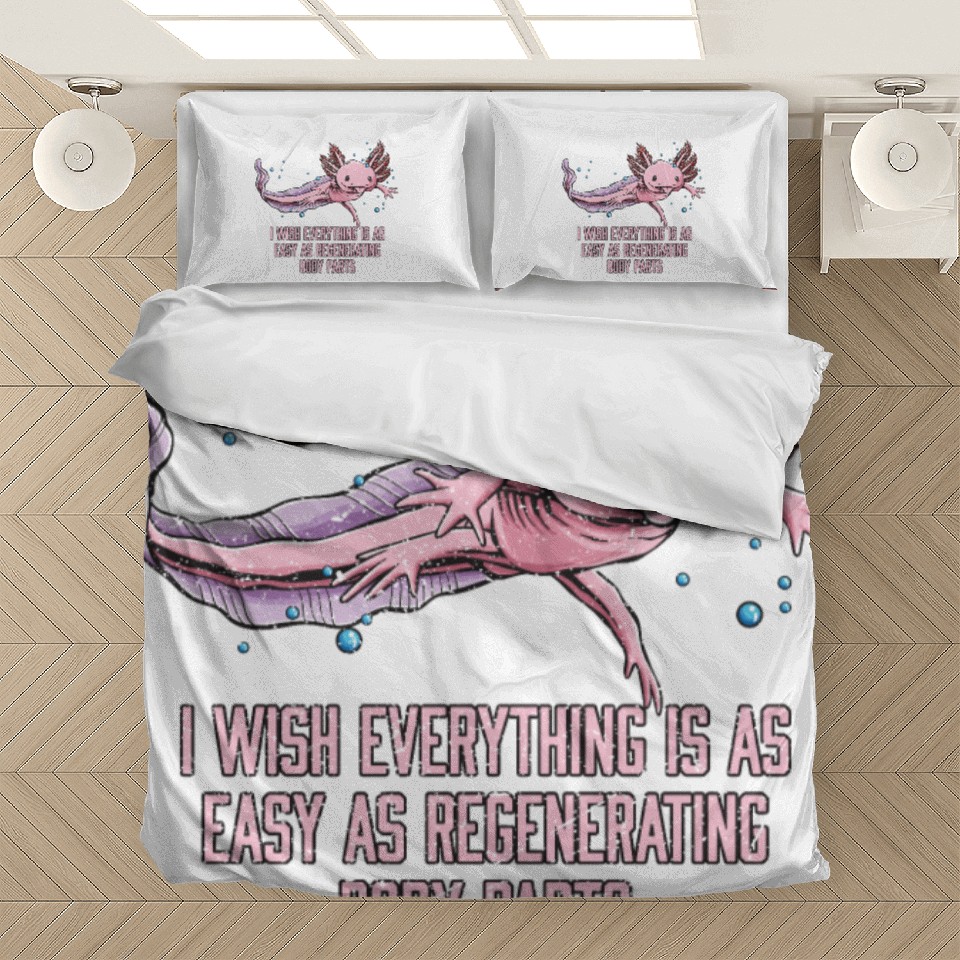 You're looking at the eye-catching product I Wish Everything Is Easy Axolotl Funny Salamander Bedding Sets For WHITE belong theme Bedding Sets at Printblur
