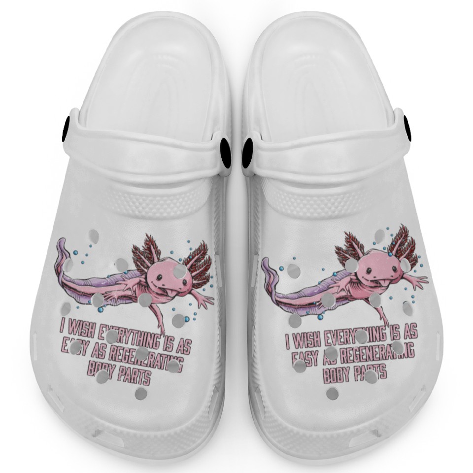 You're looking at the eye-catching product I Wish Everything Is Easy Axolotl Funny Salamander Clogs For Kids WHITE belong theme Clogs at Printblur