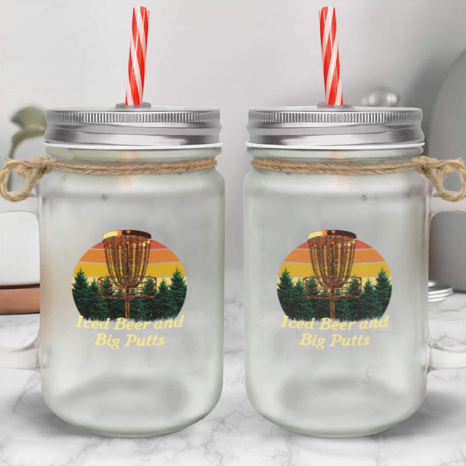 The item hot trend you're looking at is Iced Beer and Big Putts Disc Golf Beer Lover Golfe Mason Jar Cups For belong theme Mason Jar Cups at Printblur