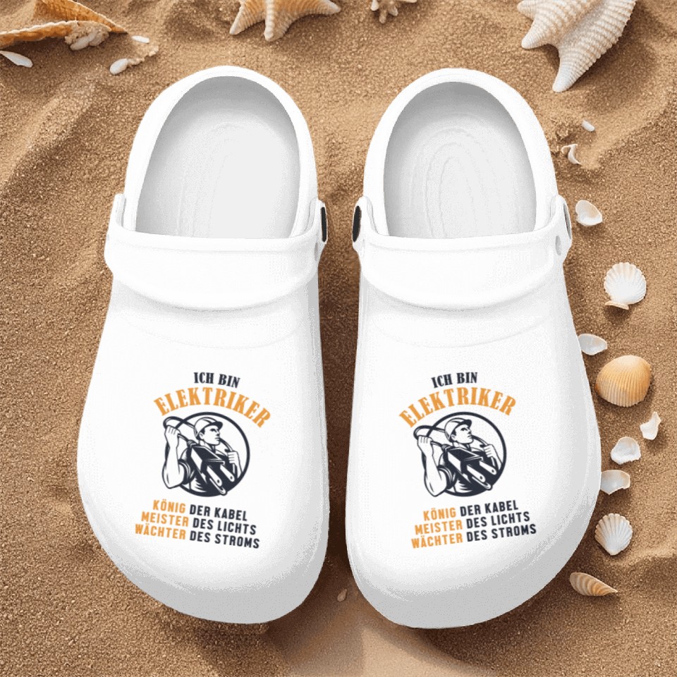 You are seeing a unique and impressive product Ich bin Elektriker Wiremen Powerline Technician Nurse Clogs For Men WHITE belong theme Nurse Clogs at Printblur