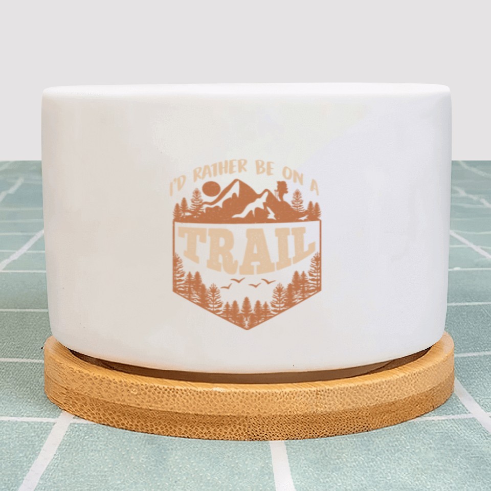 You are viewing an exclusive and elegant product I'd rather be on a Trail Wanderlust Mountain lover Plant Pots For WHITE belong theme Plant Pots at Printblur