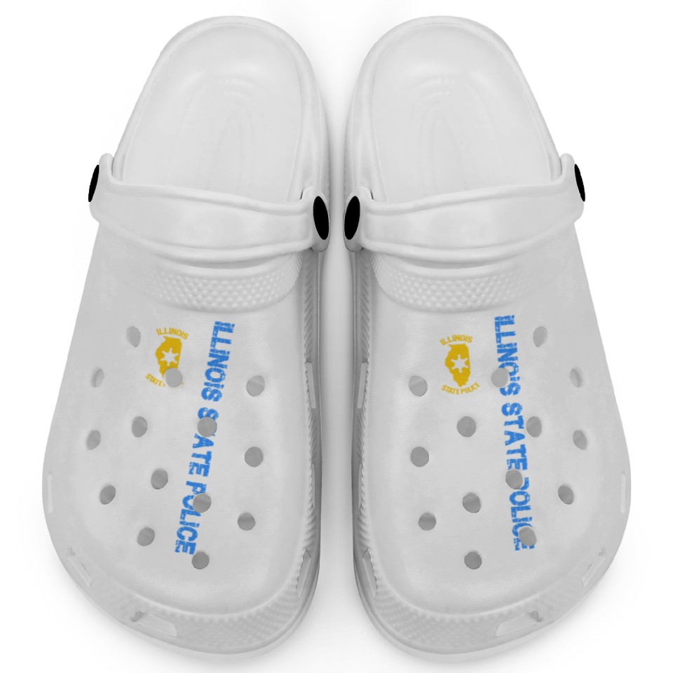 The item hot trend you're looking at is ILLINOIS STATE POLICE Clogs For Kids WHITE belong theme Clogs at Printblur