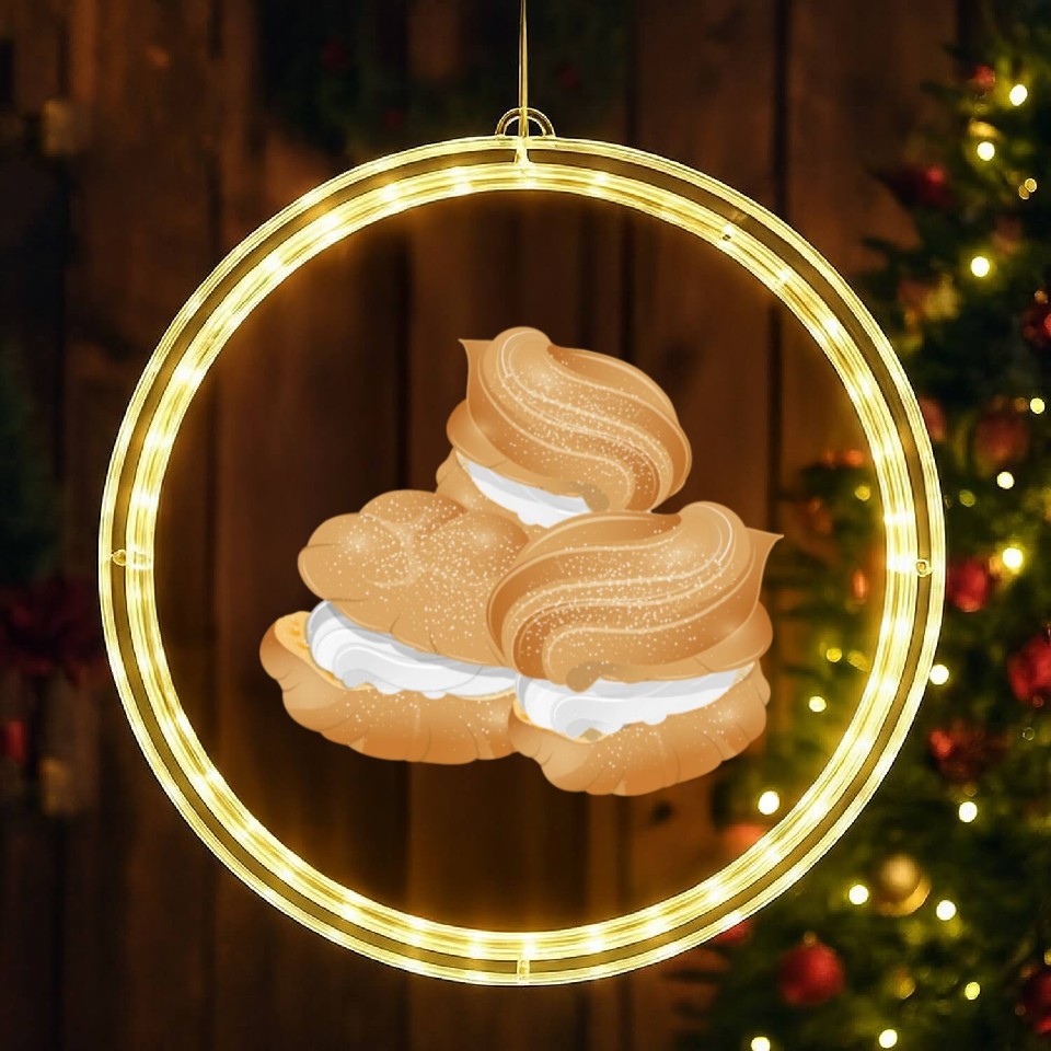 Illustration of three stuffed cream puffs LED Christmas Window Lights