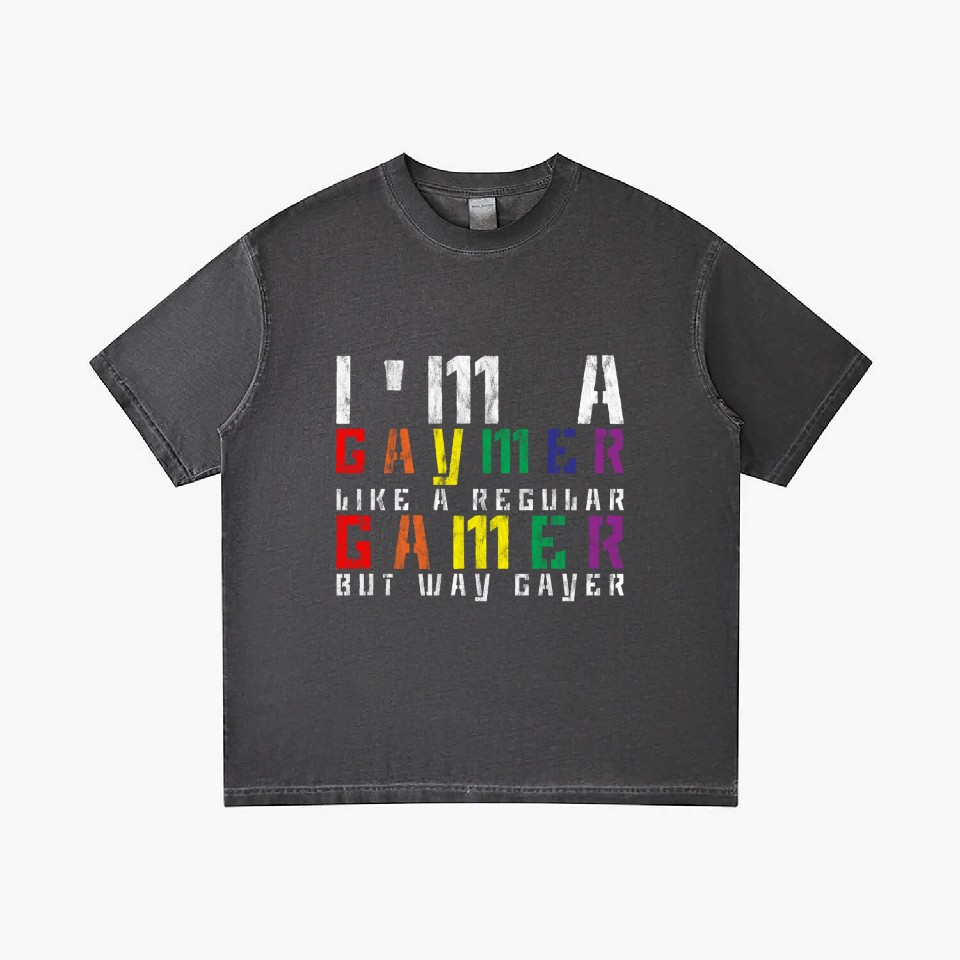 The item hot trend you're looking at is I'm A Gaymer, Like A Regular Gamer But Way Gayer 3 Gradient T Shirts For Men Washed Black belong theme Gradient T-Shirts at Printblur