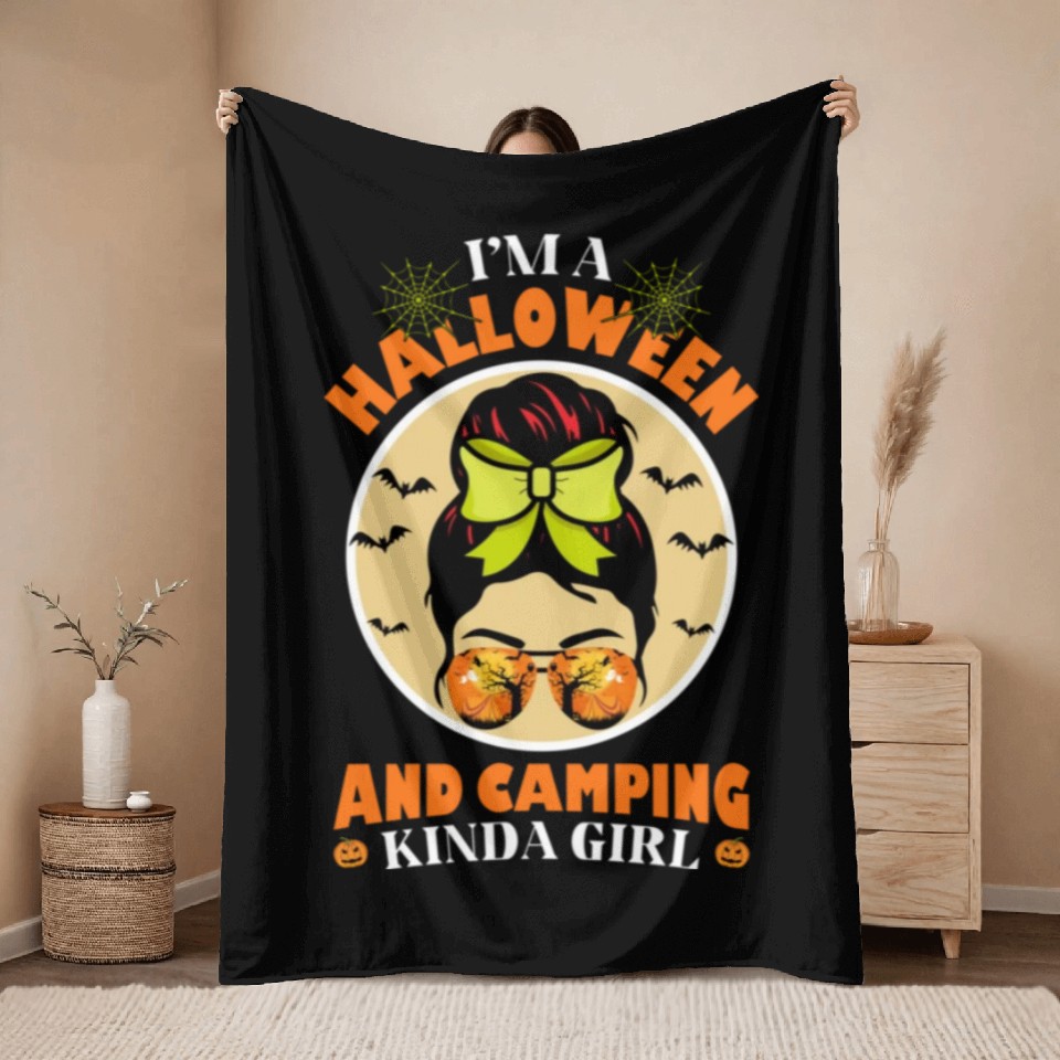 You are seeing a unique and impressive product Im a Halloween And Camping Kinda Girl Trick or Tre Throw Blankets For Black belong theme Throw Blankets at Printblur