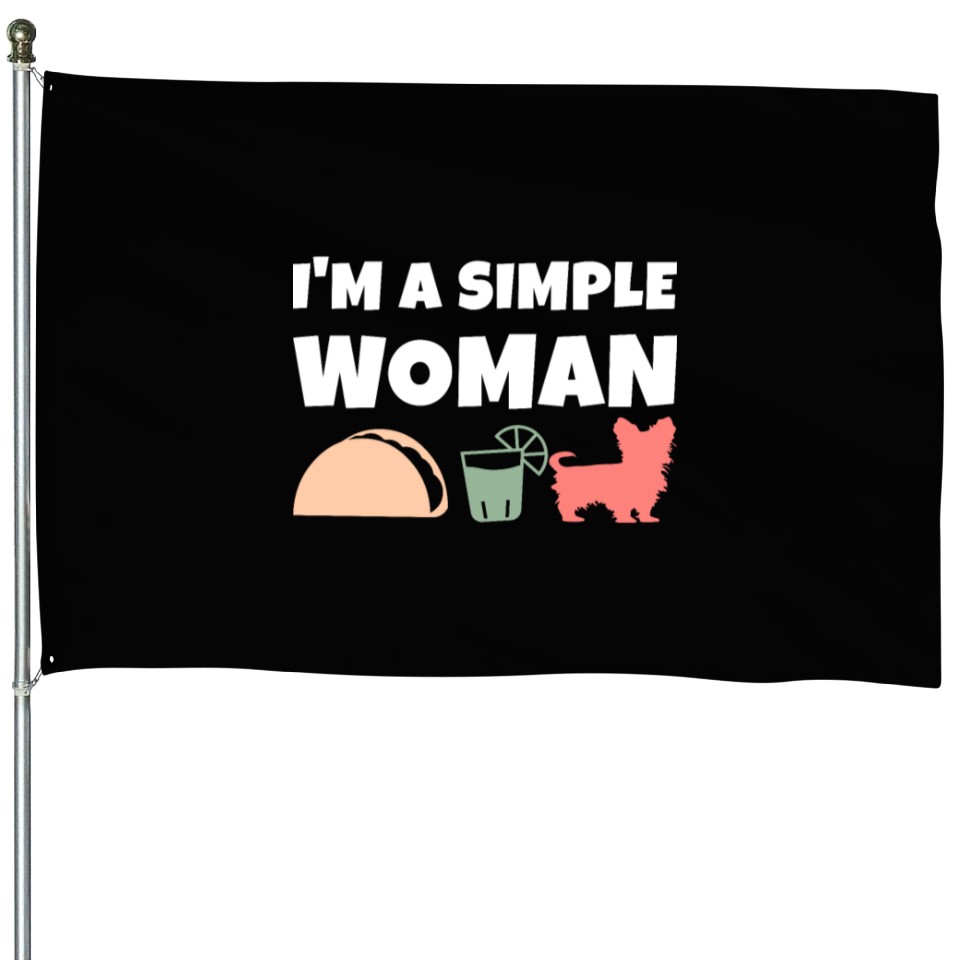 Buy stunning I'm A Simple Woman Tacos Tequila Yorkshire Terrier House Flags or see more House Flags products at Printblur right now to receive many amazing discounts!