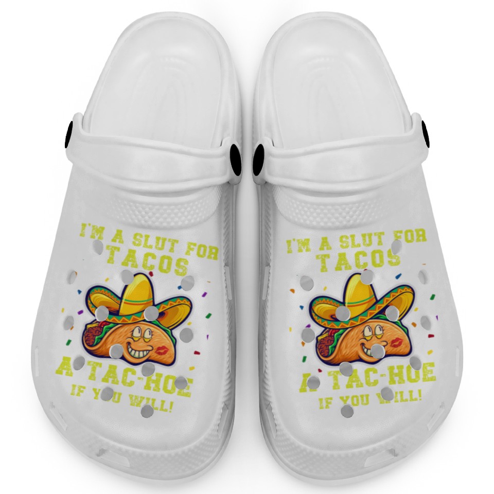 Buy stunning Im a slut for tacos, a tac-hoe if you will Clogs or see more Clogs products at Printblur right now to receive many amazing discounts!