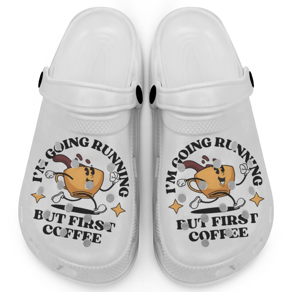 Shop for attractive I'm Going Running But First Coffee Clogs or see more Clogs products on https://printblur.com right now!