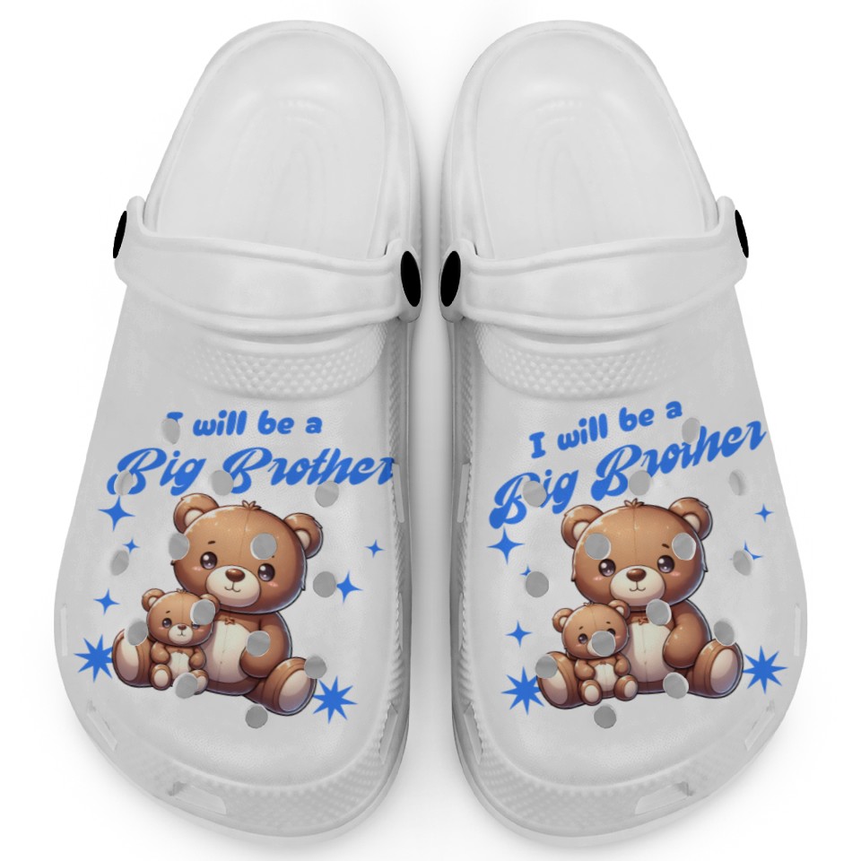 You are seeing a unique and impressive product I'm Going To Be A Big Brother Cute Teddy Bears, Clogs For Kids WHITE belong theme Clogs at Printblur