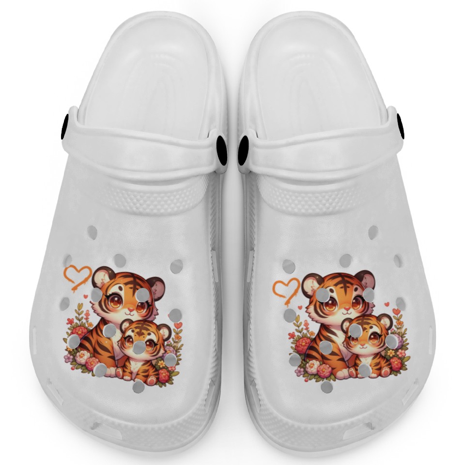 You're looking at the eye-catching product I'm Going To Be A Big Sister Cute Tiger Clogs For Kids WHITE belong theme Clogs at Printblur
