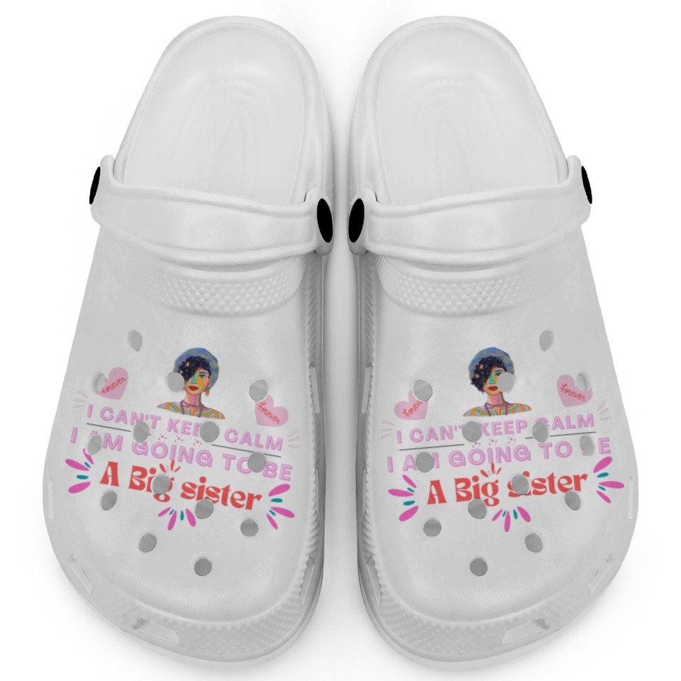 You're taking a peek at the product I'm Going To Be A Big Sister , design by roka0000 Clogs For Kids WHITE belong theme Clogs at Printblur