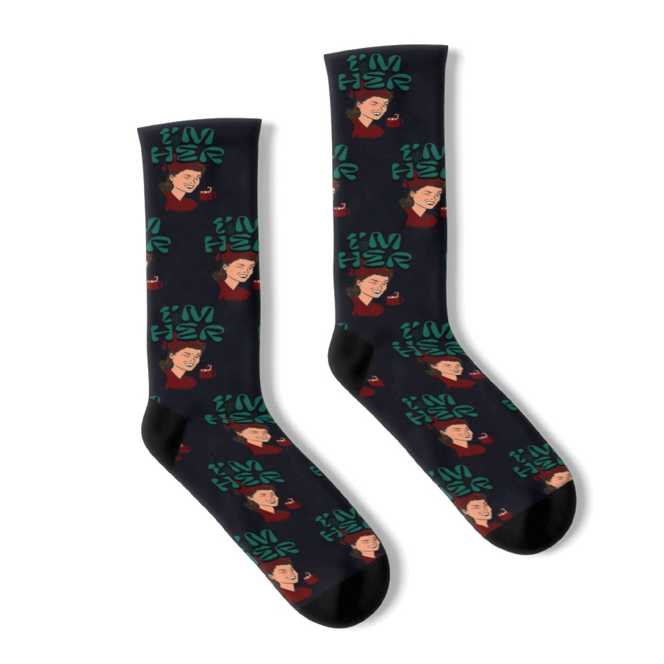 You are viewing an exclusive and elegant product Im Her! Christmas/ Mrs. Claus design Socks For Black belong theme Socks at Printblur