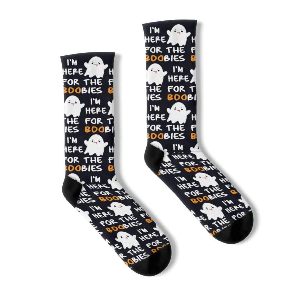 The item hot trend you're looking at is I'm Here For the Boobies Funny Baby Halloween Socks For Black belong theme Socks at Printblur