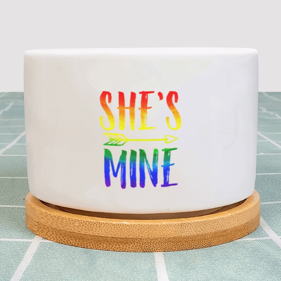 I'm Hers She's Mine LGBT Pride Lesbian Couple Plant Pots