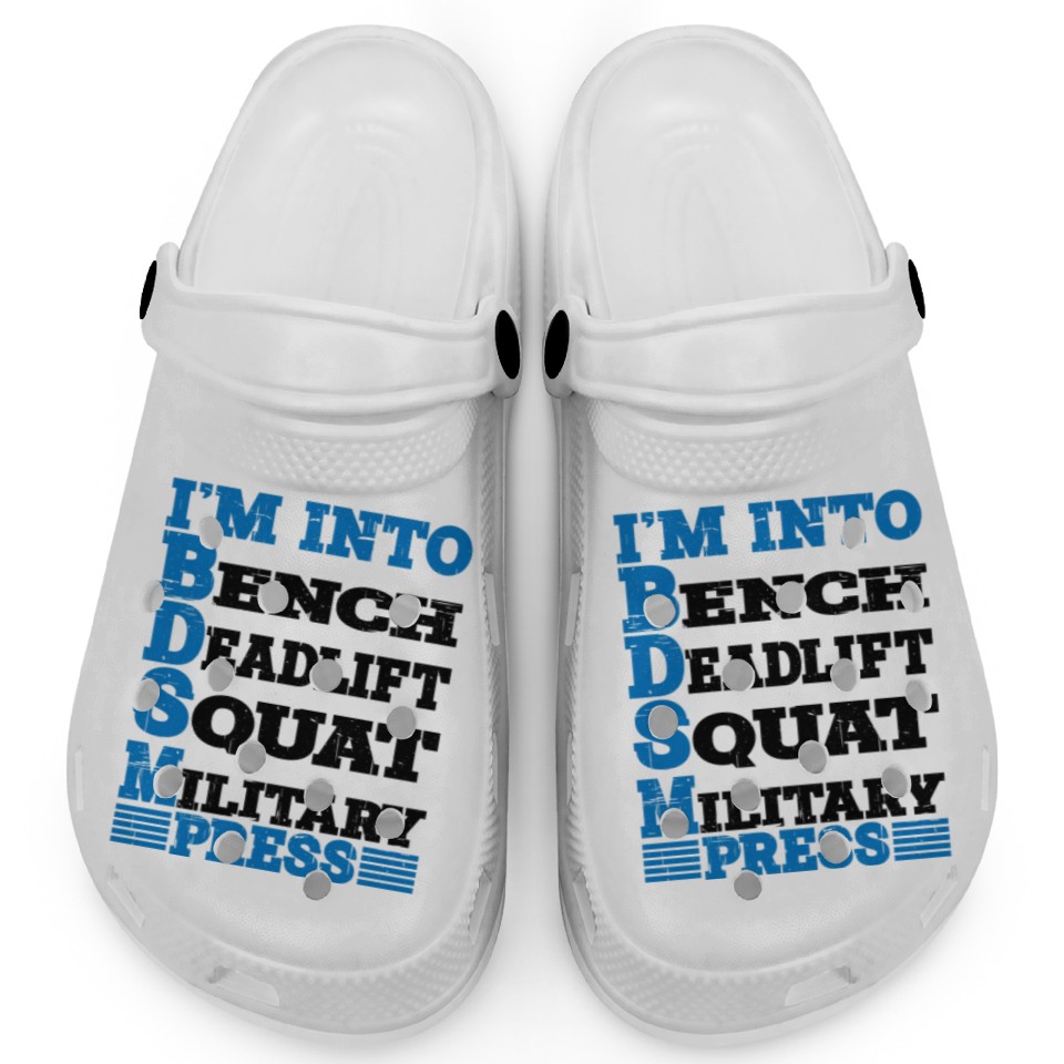 Buy eye-catching Im Into BDSM Bench Squat Deadlift Military Press10 Clogs or see more Clogs products at Printblur shop now to explore many surprises from our shop!